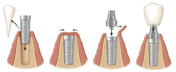 La pose d’implants s’adresse à une très large majorité de patients dès l’âge de 18/20 ans. La première condition à respecter est d’avoir un os en bon état (en quantité et en qualité suffisante). Le questionnaire médical permettra d’identifier d’éventuelles contre-indications médicales. Après un examen clinique, radiographique (scanner 3D) et prothétique, l’intervention se déroule le plus souvent en deux étapes. D’abord on incise la gencive et on prépare un logement dans l’os pour mettre en place l’implant. Après l’avoir recouvert d’une vis de cicatrisation, on referme la gencive et on laisse la cicatrisation osseuse (ostéointégration) se dérouler pendant 3 à 4 mois Enfin, la prothèse définitive est alors réalisée classiquement.